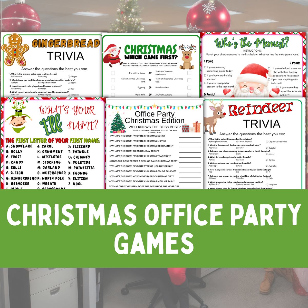 How to Play: This 9-game Christmas Cookie Game Bundle features cookie-themed activities including matching, word searches, trivia, and guessing games. Print whichever games suit your office vibe and group size.